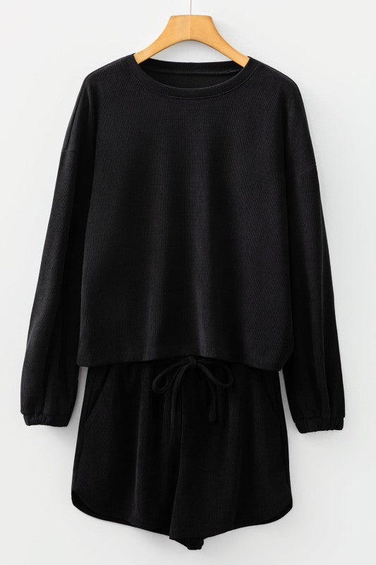 Effortless style meets cozy comfort with this dark brown two-piece set. The textured knit fabric feels as good as it looks—soft, breathable, and built to last. Oversized drop shoulders and a relaxed silhouette on the pullover give you that perfectly laid-back vibe, while the matching drawstring shorts complete the casual-cool ensemble. Perfect for lounging, running errands, or just vibing in style. Polyester/Spandex